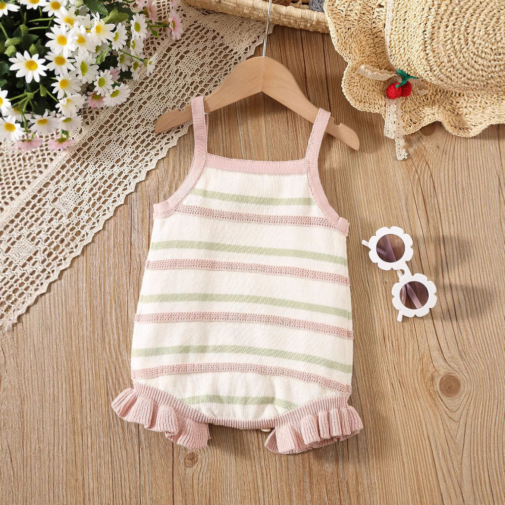 Summer Arrival Baby Girls Cute Thin Striped Pattern Sleeveless Strap Onesies